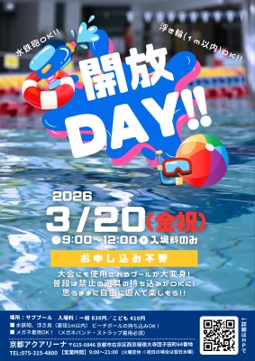 この日だけは特別✨ コースロープをぜ~んぶ外して、プール全体が”あそび場”に大変身! ☑浮き輪(1m以内)OK!! ☑水鉄砲OK!! ☑みんなで自由に遊ぼう♪ いつもと違う開放感を楽しもう! 家族やお友だちと、思いっきり水あそびしよう! ※上記イベント時間中は、ウォーキングコース・泳ぐコースがございませんので、予めご了承ください。